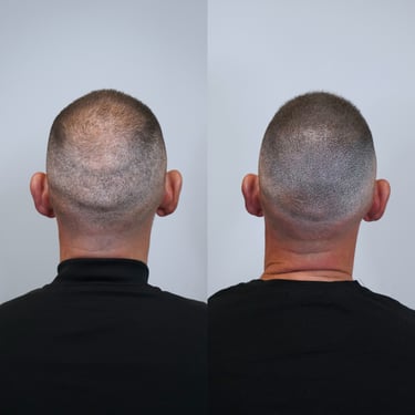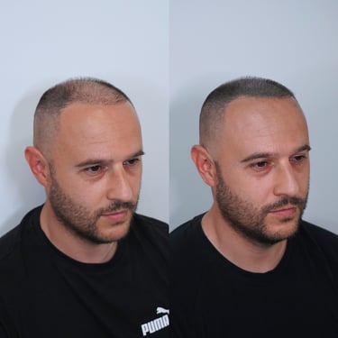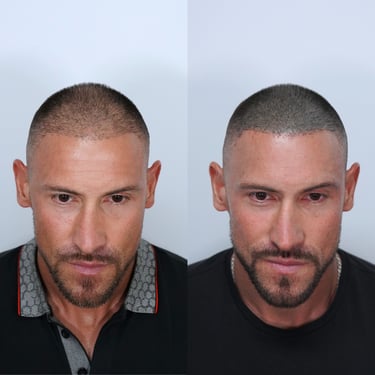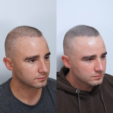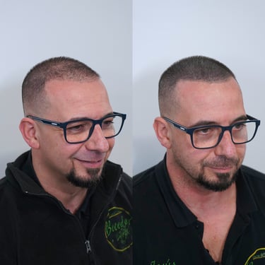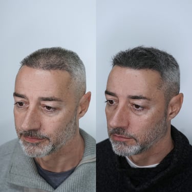 Gracias a nuestros años de experiencia, hemos comprobado que realizar una degradación lateral nos permite eliminar por completo cualquier línea de transición entre el cabello nativo de los laterales y la micropigmentación capilar en la parte superior.