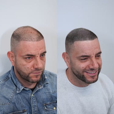 Gracias a este diseño de desvanecido en la micropigmentación, conseguimos un efecto de corte degradado perfectamente integrado, adaptado a cada estilo de cabello.